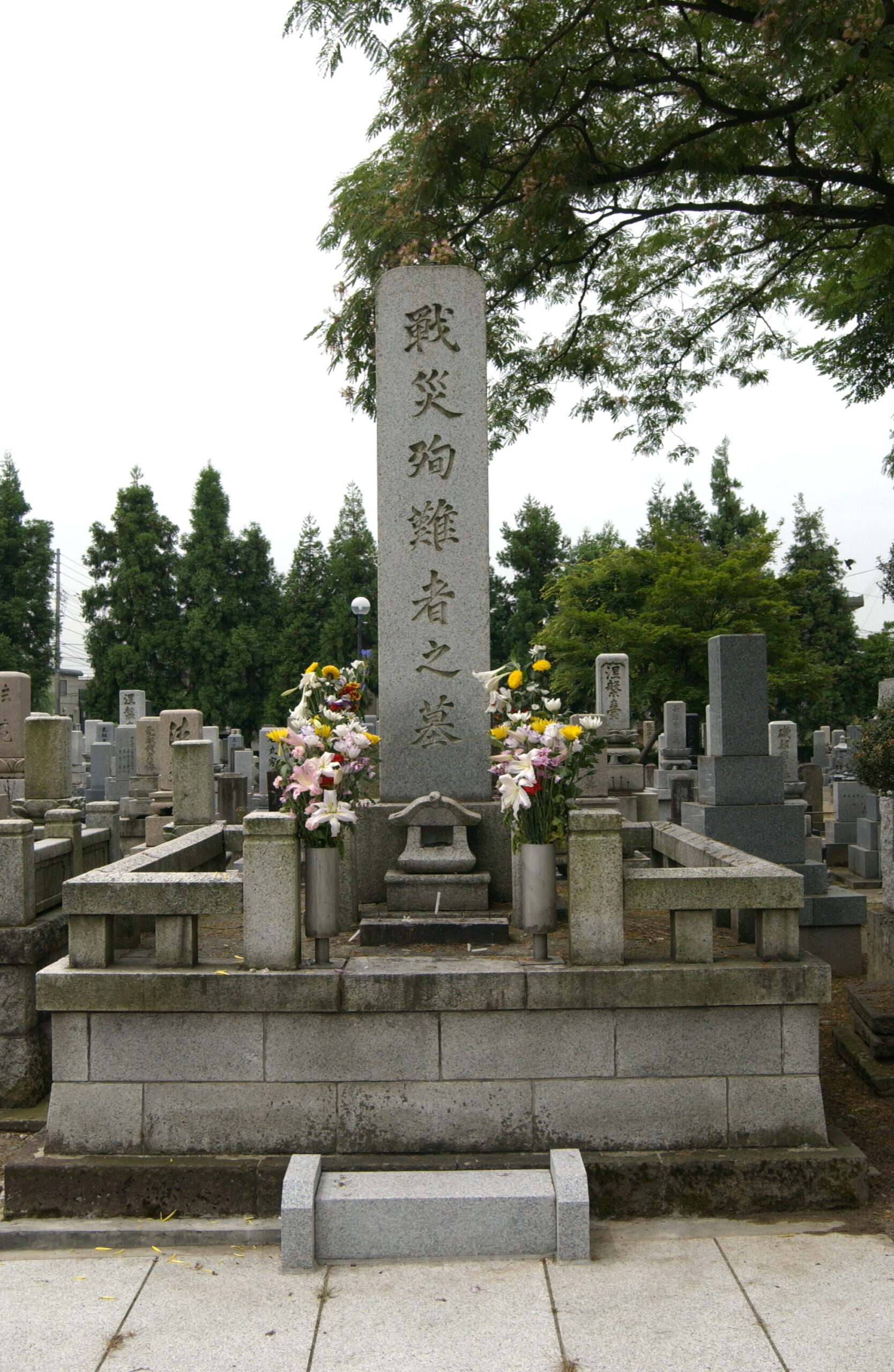 身寄りが分からない遺体は合同で荼毘に付されましたが、遺骨の埋葬場所はなかなか見つかりませんでした。そうしたなかで、四郎丸の昌福寺が埋葬場所の提供を快く引き受けてくれることとなり、1945(昭和20)年9月に遺骨はようやく埋葬されました。そして、1947(昭和22)年9月には、市民の寄附により墓碑が建立されました。墓の正面には「戦災殉難者之墓」、裏面には「昭和二十年八月一日当市戦災 殉難者市長ほか千百四十名 茲に有志相計り全市民の浄財を以って永く菩提を弔う」と刻まれています。