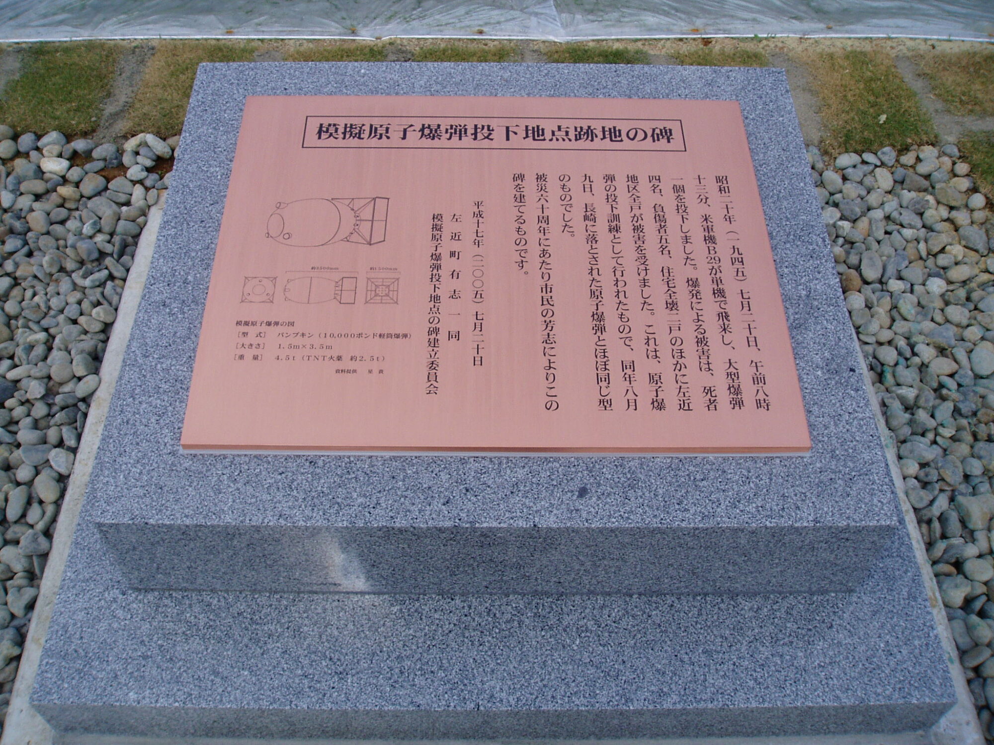 1945(昭和20)年7月20日午前8時13分。左近町(当時は上組村大字左近)の畑に1発の爆弾が投下されました。